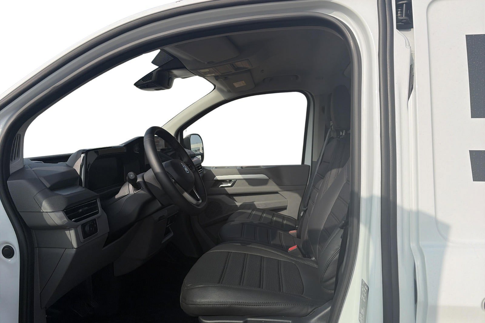 Armlæn på førersæde, Dæktrykskontrolsystem, Parkeringssensorer bag, DAB+, Forlygter, LED, Fjernlysassistent, Multifunktionsrat, Bakkamera, Anhængertræk, fast, Multifunktionskunstlæderrat, Forrude, elopvarmet, Selestrammer, Airbag til fører og forsædepassager, med frakobling af forsædepassagerens airbag og gardinairbags, Handskerum med dæmpet lukning, med lys, Skillevæg af metal, høj, øverste del af skillevæg med stofbeklædning på førerkabinesiden, |